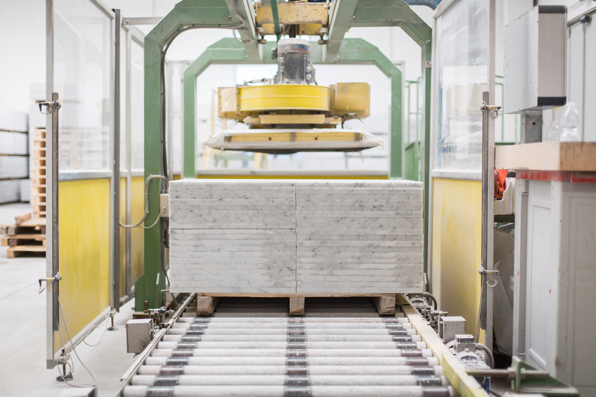 Ten frame saws are used to transform the marble blocks into unfinished slabs, ready for use. Does your project have specific technical requirements? We can meet your needs, embellishing the slabs with a wide range of surface treatments.项目