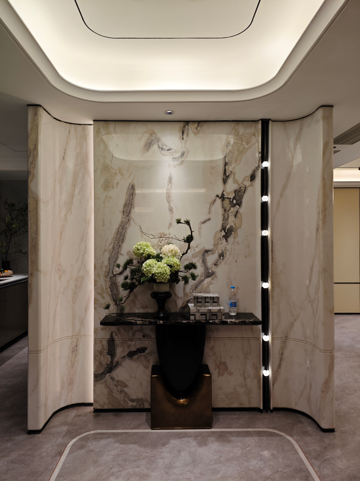 • 纹路: 它的纹路通常比较细腻,多为淡米色、象牙色或浅灰色,不像意大利鱼肚白那么张扬,更适合极简或轻奢风格。