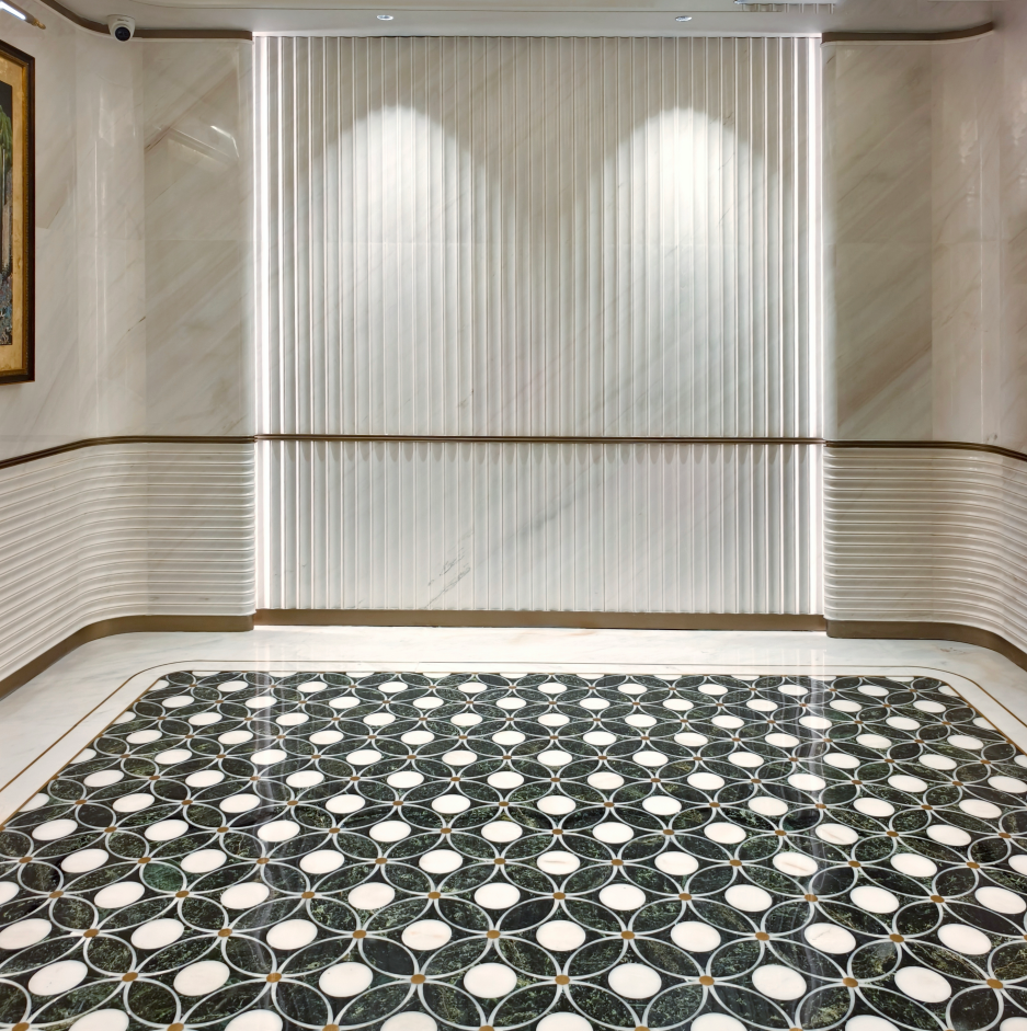 纹理: 底色是极为纯正柔和的象牙白色,质感温润细腻。暖色调的纹理划过板面,素雅不失灵动。